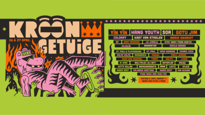 Na een succesvolle eerste editie keert Kroongetuige op 26 en 27 april terug als volwaardig tweedaags festival. Verspreid over drie locaties op de Spoorzone met de Spoorboulevard als kloppend hart – zijn er een grote selectie aan live-acts en DJ-sets te zien. Op het livepodium staan onder anderen Yīn Yīn, sor, Hang Youth, Gotu Jim, Coloray, Kaat van Stralen en Maria Iskariot. Het festival wordt aangekleed met foodtrucks, een leuke vinyl- en vintagemarkt en meer. Er komen een select aantal twee dagen tickets beschikbaar.